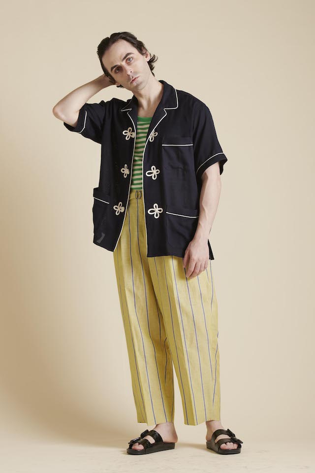 素材は、オリジナルのキュプラリネンのレガッタストライプを使用。